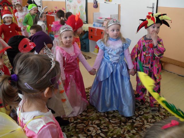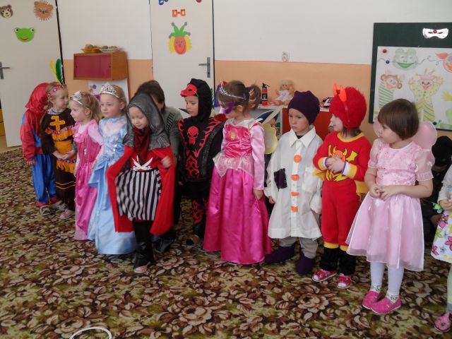 Karneval sa konal v budove MŠ 15. marca 2012. Škôlkari sa obliekli do rôznych kostýmov a pozrieť sa na nich prišli aj žiaci prvého ročníka. Zábava bola veľkolepá a masky úžasné.