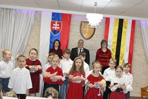 Pozvaní rodičia prišli so svojimi deťmi, aby boli ako noví občania našej obce slávnostne privítané do života. Starosta obce im srdečne zablahoželal a poprial všetko dobré. Žiaci 2.A spolu s pani učiteľkou Urdovou zaspievali a zarecitovali prítomným a krásne tak obohatili tento slávnostný akt.