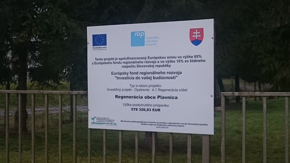 V rámci Regionálneho operačného programu - Regenerácia sídiel na obdobie 2007 - 2013 požiadala obec Plavnica v roku 2009 nenávratný finančný prostriedok na projekt: Regenerácia obce Plavnica.