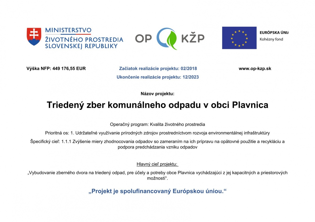 Zlepšenie triedenia zberu komunálneho odpadu v obci Plavnica