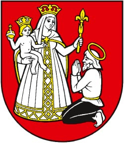 Historickým symbolom obce od 14. storočia bola neustále Panna Mária. V obecnom znaku sa nachádza v červenom štíte odetá do strieborného rúcha so zlatou nášivkou. V náručí drží nahé dieťa (strieborné), ktoré má v pravej ruke zemské jablko. Panna Mária drží v ľavej ruke žezlo. Kľačiaci svätý Simeon má striebornú košeľu a čierne nohavice. Koruny, zemské jablko, žezlo a gloriola sú zlaté.